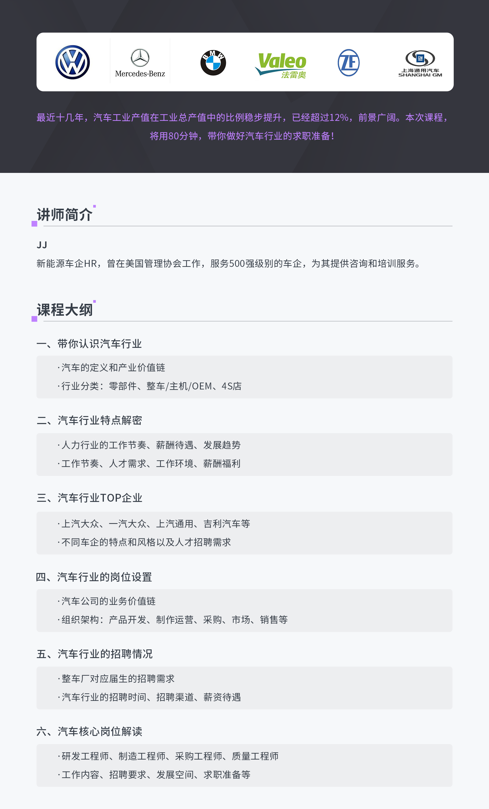 本次课程将用80分钟,带你做好汽车行业的求职准备!