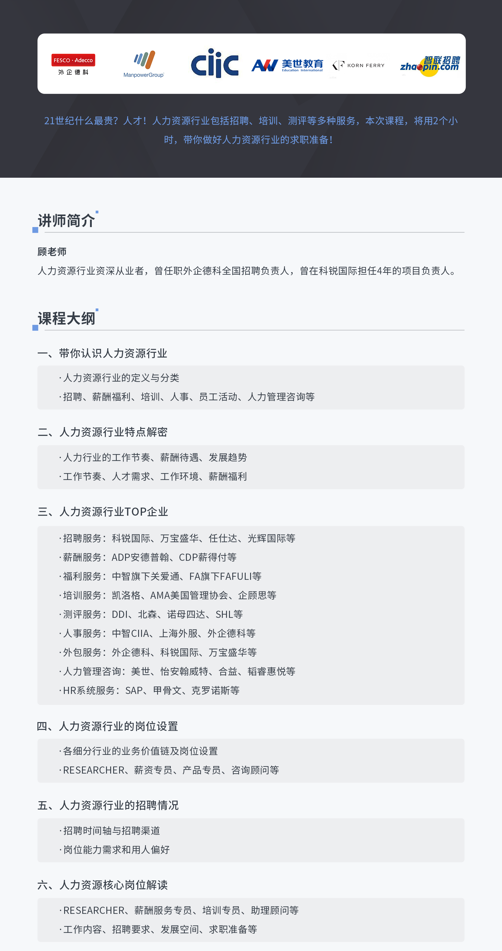 本次课程将用120分钟,带你做好人力资源行业的求职准备!